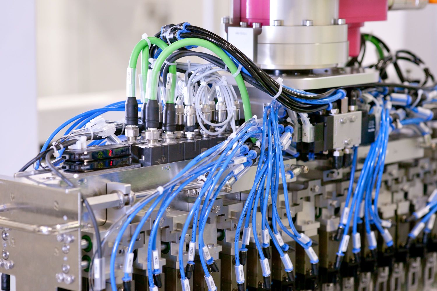 The bus node is the Cube system’s interface to the PLC. It supplies the system and all connected sensors and actuators with power while monitoring currents using a smart load circuit control (Mico).